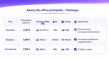 Ces éléments rendent Hostinger particulièrement attractif pour lancer un projet rapidement.