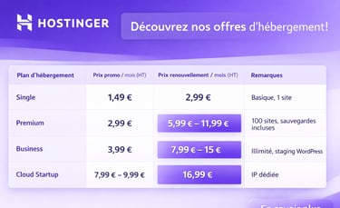 Découvrez pourquoi Hostinger est le choix privilégié pour un hébergement web performant, rapide et abordable. Profitez de prix ultra-compétitifs, de performances élevées et d'un support réactif.