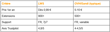 Contrairement à certains concurrents qui attirent avec des prix bas puis ajoutent des options payantes obligatoires, LWS joue la carte de la transparence :